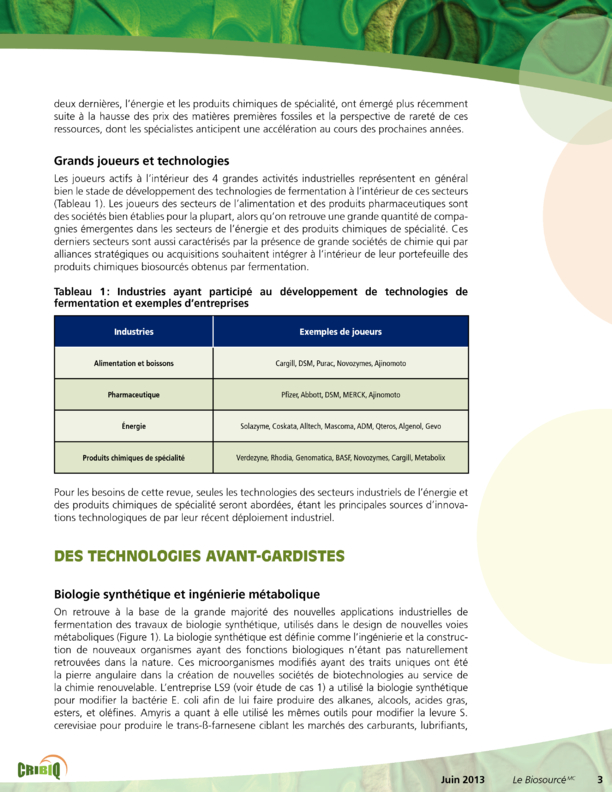 Biosourcé – Volume 1, numéro 4 – Juin 2013 – Pour une stratégie nationale de développement des produits industriels biosourcés
