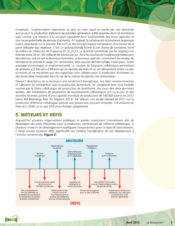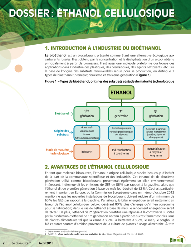 Biosourcé – Volume 1, numéro 2 – Avril 2013 – Tendances technico-économiques du secteur des produits biosourcés Avril 2013